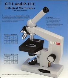 The C-11 and P-111 are Research grade Microscopes designed for use where quality optical imaging is desired. They have applications in medicine, biology and general science, both in the industrial laboratory and teaching establishments. ...Read More