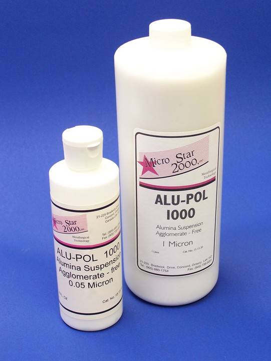 ALU-POL 1000 Colloidal Alumina Suspensions are aqueous polishing compounds of high purity calcined alumina permanently suspended and ready to use.
